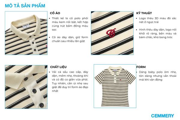 - Form dáng: Dáng baby fit ôm nhẹ cơ thể, tôn dáng tự nhiên mà không gò bó. Thiết kế phù hợp cho nữ, dễ phối đồ với quần jean, chân váy hoặc short, thích hợp mặc đi học, đi làm hoặc đi chơi thường ngày.