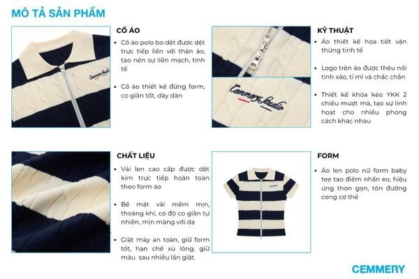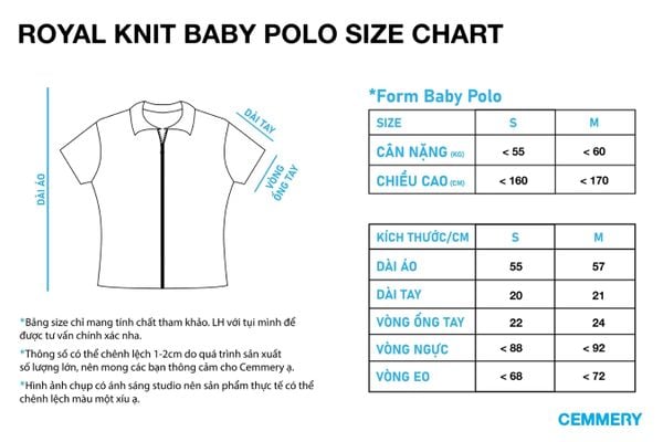 Dễ phối cùng chân váy, quần jeans, short hay quần ống đứng – Royal Knit Baby Polo là item “must-have” cho nàng theo đuổi sự trẻ trung mà vẫn muốn giữ nét thanh lịch, chỉn chu.Tên tổ chức sản xuất: Hộ kinh doanh may mặc Cemmery