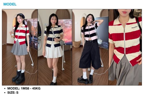 Chiếc áo baby tee polo phối sọc dành cho những cô nàng yêu thích phong cách preppy – trẻ trung – dễ phối.
