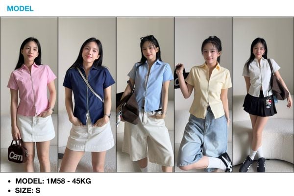 • Form dáng: Sơ mi – ôm nhẹ phần eo, vừa vặn, tôn dáng mà vẫn thoải mái.