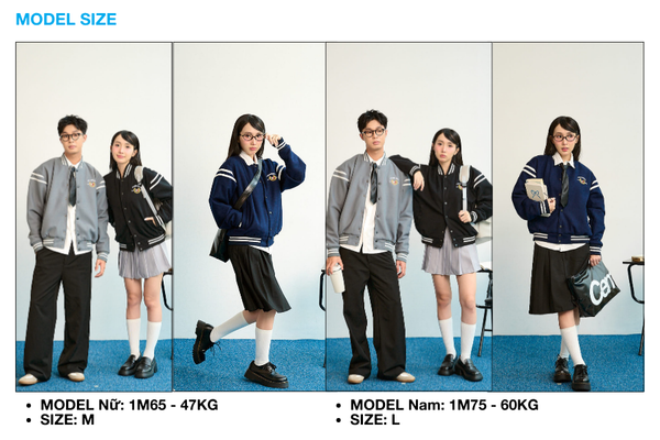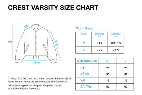 Crest Varsity là mẫu áo khoác varsity form boxy unisex mang tinh thần học đường hiện đại, dễ phối, dễ mặc, phù hợp với cả nam và nữ.