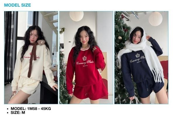 - Màu: Đỏ – Kem – Navy (đồng bộ màu giữa sweater và short để phối set đẹp nhất).
