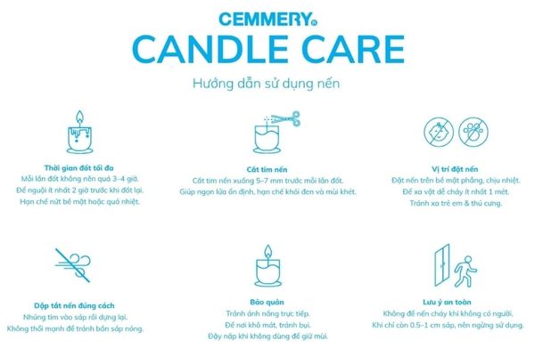 Thành phần thiên nhiên, an toàn cho sức khỏe: 60% sáp đậu nành, 20% sáp dừa, 20% sáp cọ, 10% tinh dầu