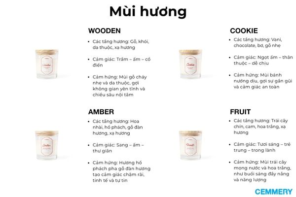 4 mùi hương: Wooden, Cookie, Amber, Fruit mang đến trải nghiệm mùi hương cân bằng, dễ dùng và phù hợp với nhiều không gian khác nhau.