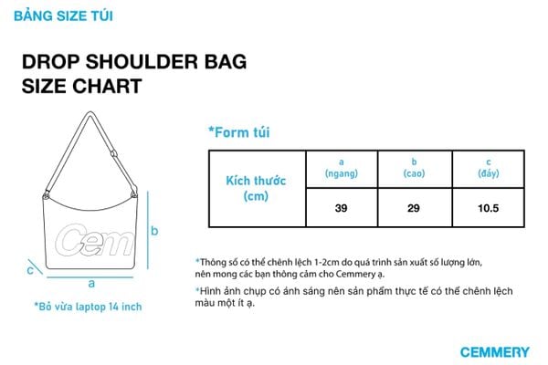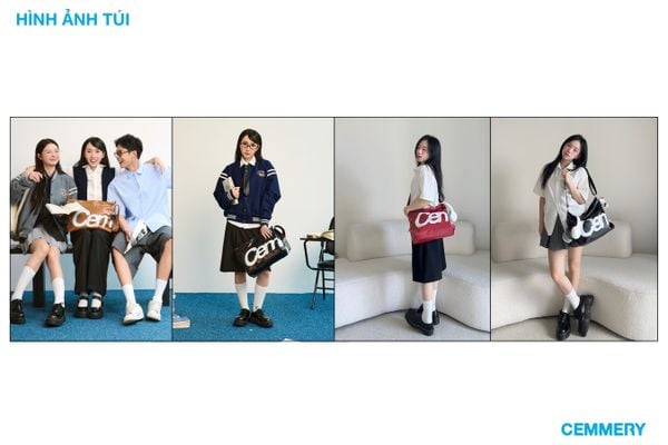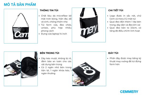 + Điểm nhấn nổi bật với logo in lớn “Cem” – “mery” chia đều hai mặt túi, tạo nhận diện thương hiệu rõ ràng mà vẫn giữ sự tinh tế.